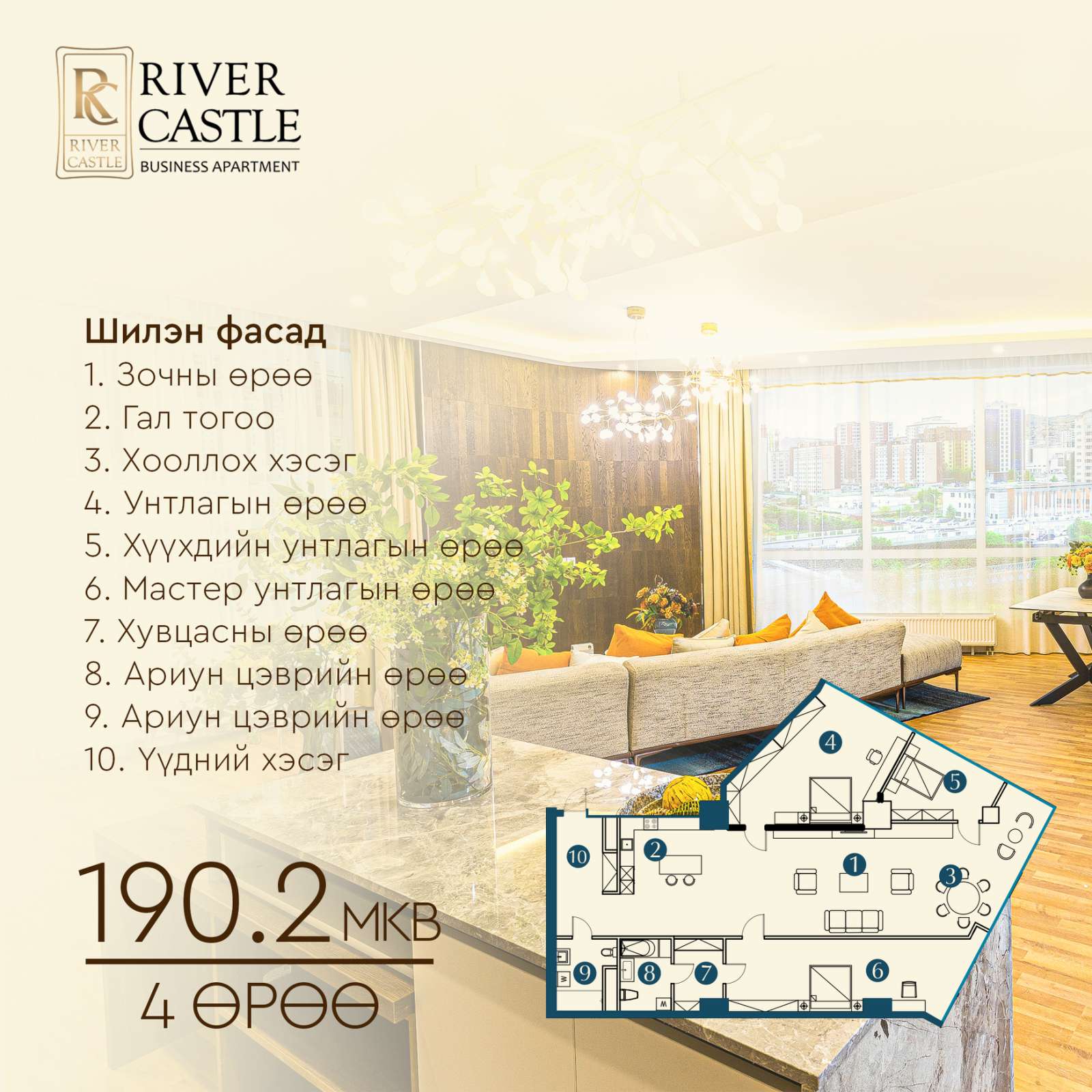 Тиймээс бид энэ удаагийн онцлох төслөөр дээрх шаардлагуудад нийцсэн, иргэдийнхээ эрэлт хэрэгцээг хангаж, тав тух, чанарыг дээдэлсэн River Castle төслийг танилцуулж байна.